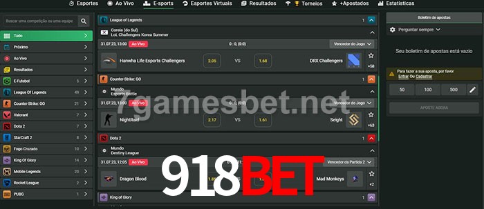 O 918bet oferece uma grande seleção de opções de apostas em e-sports com probabilidades competitivas